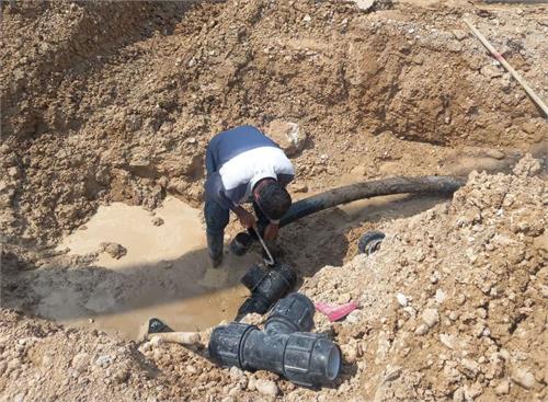 توسعه شبکه به همراه سروصل با لوله ۹۰ و ۱۱۰ از جنس پلی اتیلن، در منطقه نیزار یک خیابان